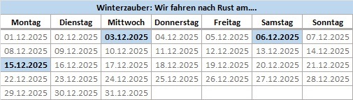 Wir fahren an den Daten, welche blau hinterlegt sind: